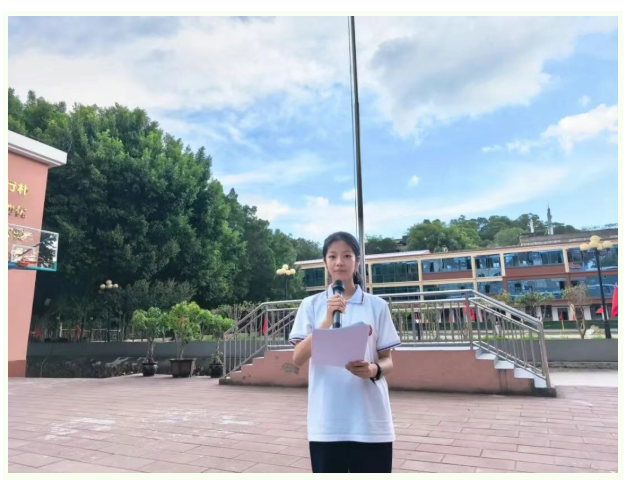 升旗仪式上,初三(10)班欧芷烨同学发表讲话。她结合我校“立德存真,志诚行朴”的校训,号召全体同学以“立德”为根本,以“存真”为底色,以“志诚”为准则,以“行朴”为作风,将个人成长融入祖国发展,用实际行动为强国复兴贡献青春力量。同学们专注聆听、倍受鼓舞,这份青春誓言不仅点燃了校园的爱国热情,更让“立志报国”的种子在同学们心中扎根生长。