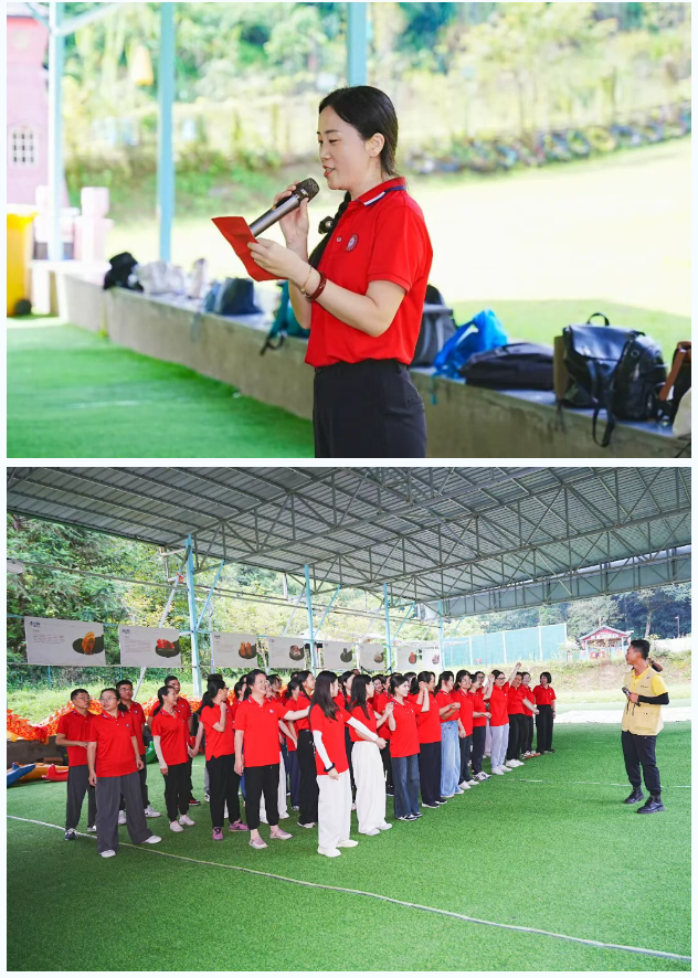 破冰之后便是紧张有序的团队组建环节。各小组迅速推选队长,集思广益构思队名、设计口号、选定队歌。“先锋队”“启航队”“追梦队” 等富有朝气的队名相继诞生,嘹亮的口号回荡在飞云峡的上空。在团队展示环节,老师们精神抖擞、意气风发,充分展现了我校老师们良好精神风貌和昂扬斗志。