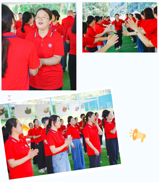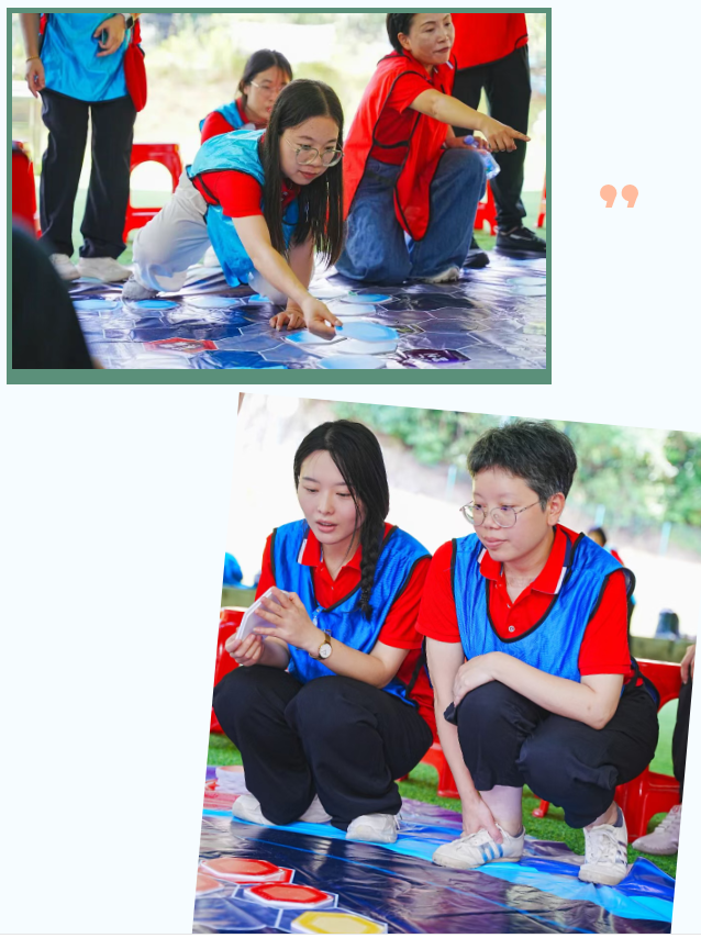 若说寄语是心的联结,那破冰分组游戏便是情的交融。团队互动小游戏让原本略显拘谨的氛围瞬间活跃起来,老师们积极参与其中,放松身心。