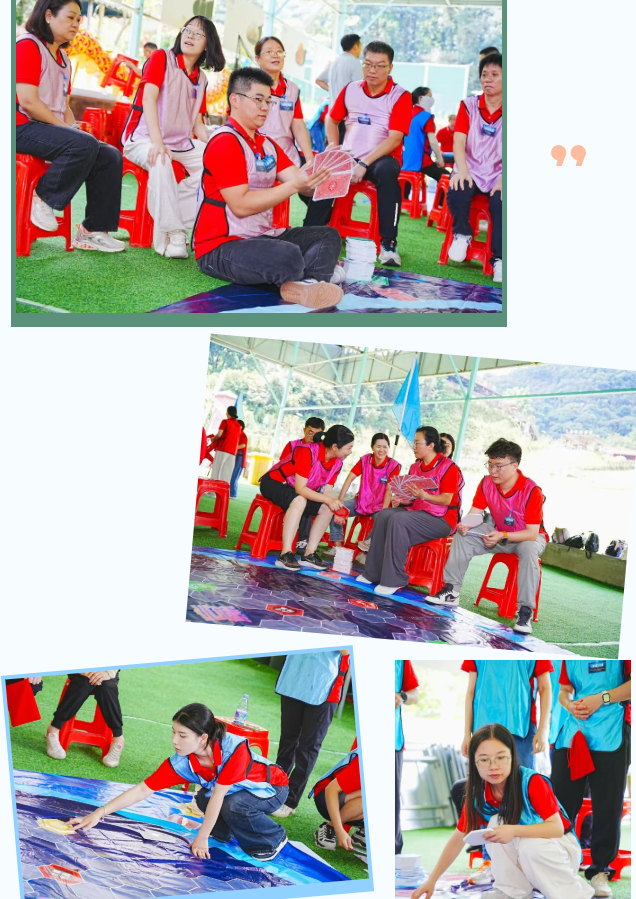 接下来的 “步步为赢” 主题团建中,一系列精彩的游戏轮番上演,考验着各团队的智慧、速度与协作能力。“捕鱼达人” 环节,老师们双手紧握绳头,默契配合,小心翼翼地钓起地面的 “鱼” 并精准甩到中间的网上,每一次成功都伴随着阵阵欢呼;“领地五子棋” 里,参赛队员凝神思考、巧妙布局,场外队友出谋划策,展现了极强的战略思维;“拼图大战” 中,各队成员分工协作、细致观察,在与对手的比拼中快速拼接方块,充分发挥了团队的智慧合力;“撞柱游戏” 里,老师们屏气凝神、精准击打,为团队争取高分;“黄金争夺赛” 中,参赛老师手持筷子,眼疾手快地夹起金珠,现场加油声、呐喊声此起彼伏。在一个个游戏中,老师们互帮互助、密切配合,不仅收获了快乐,更深刻体会到了团队协作的重要性,凝聚了强大的团队力量。