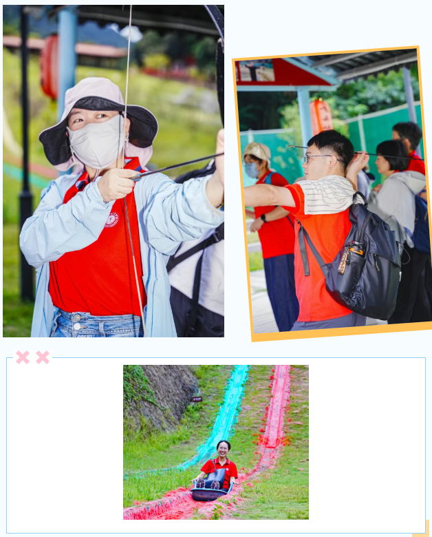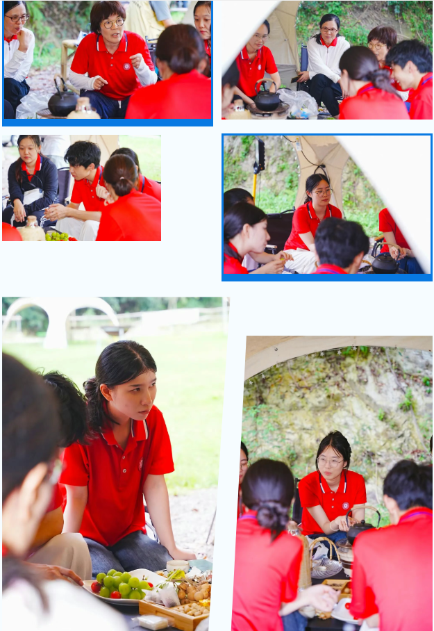 午后的时光,是动静皆宜的惬意。有的老师奔赴滑草、射箭等场地体验游乐项目——穿上装备的瞬间,仿佛回到了少年时代,在风的呼啸中释放压力,在箭矢射中靶心时欢呼雀跃;偏爱宁静的老师,则围坐在炭火旁,开启围炉煮茶模式:茶水沸腾,茶香袅袅,谈一谈生活趣事,“一张一弛,文武之道也”。这样的时光,既是对平日辛劳的调剂,也让老师们在“动”中感受活力,在“静”中沉淀初心。