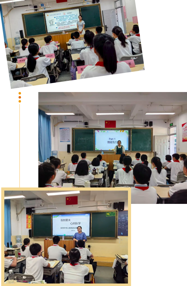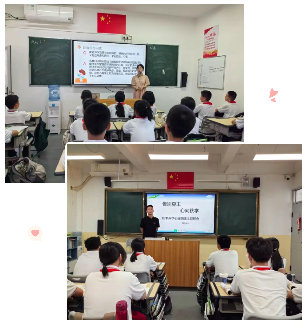 9月9日下午,各班开展“告别夏末,心向秋学”入学心理适应主题班会。课堂上,班主任化身“心灵向导”,引导同学们通过情绪先行分享开学初的小紧张与小期待,让同学们在轻松的氛围中消除陌生感。针对学业压力、人际困惑等常见问题分享小妙招。同时用生动有趣的方法引导同学们正确面对新变化,快速融入集体生活,缓解学业压力。同学们纷纷表示,此次主题班会有效缓解自己的入学焦虑,也学会很多心理调适的方法。